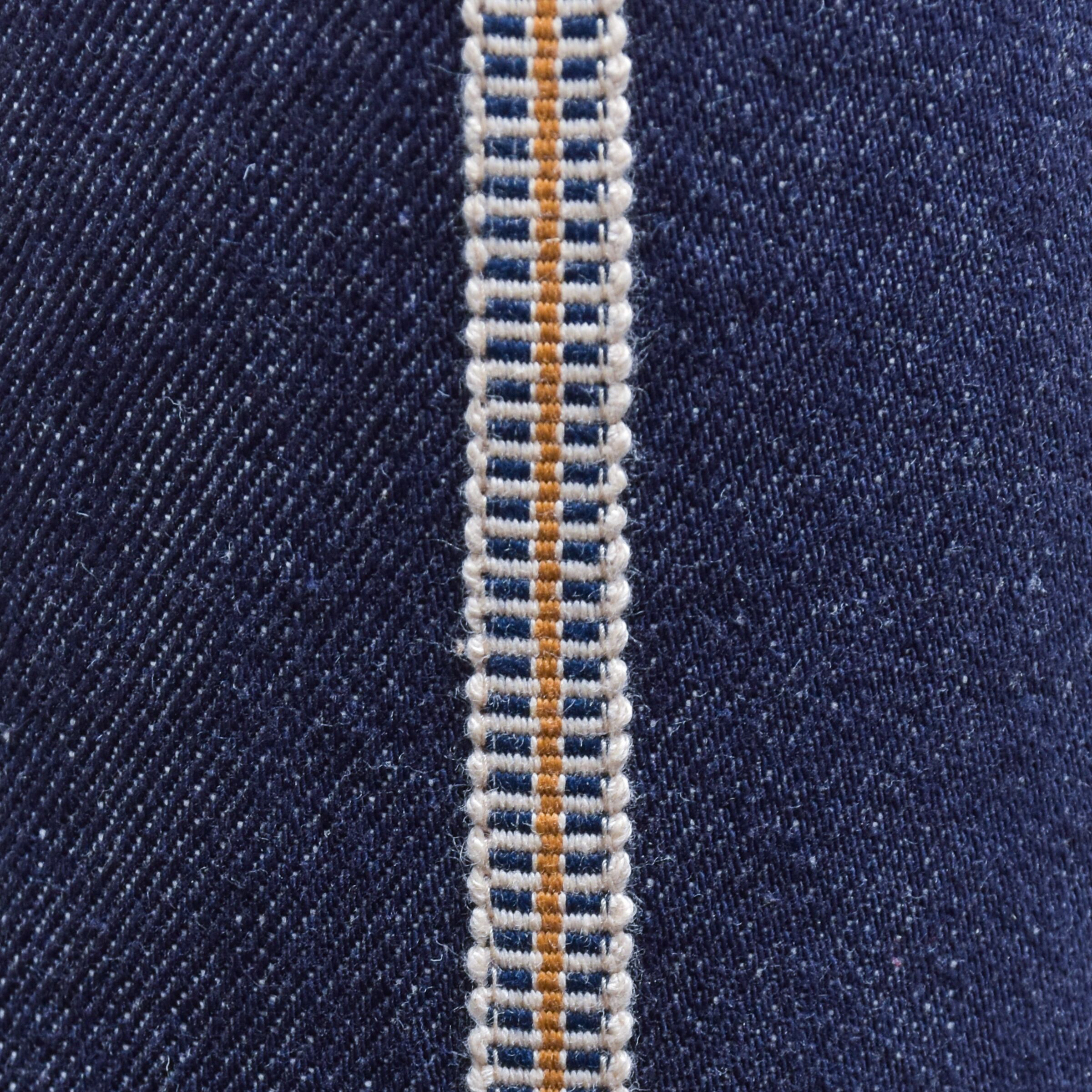 ●瀬戸内デニムSD501 色落ちしにくいインディゴ生地ベースに、アクセントに真田紐(色:YELLOW)を使ったバブーシュです。