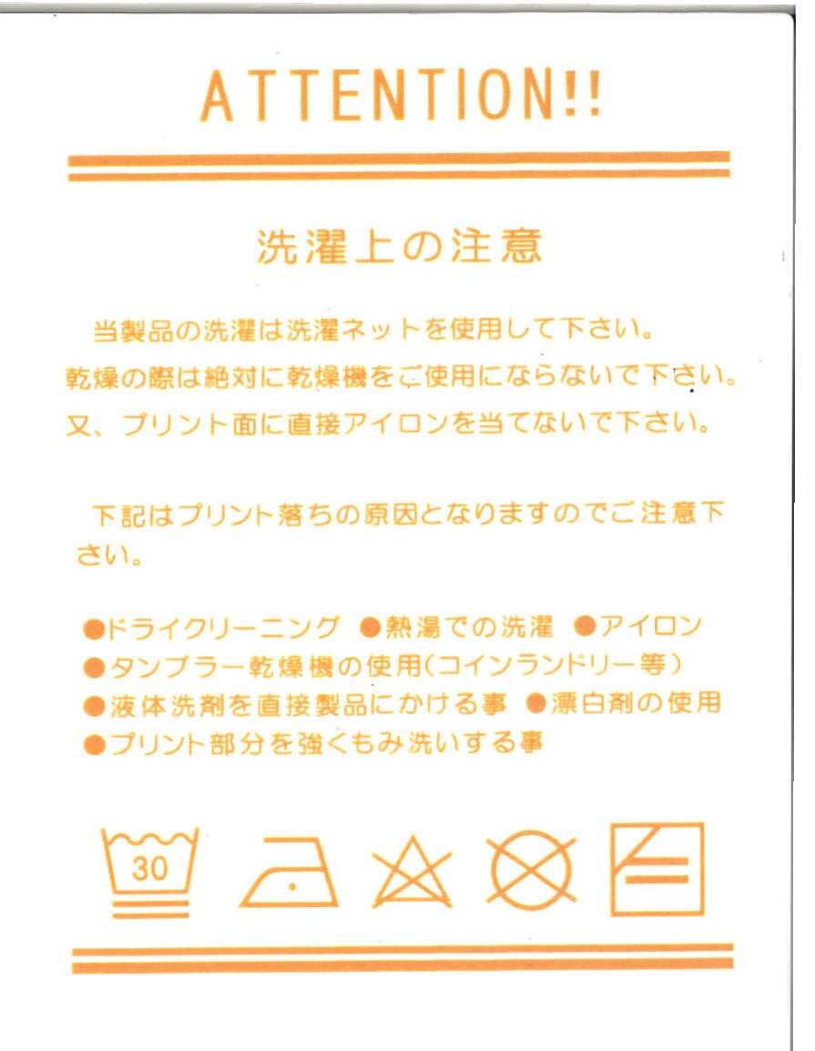 ・乾燥の際は絶対に乾燥機をご使用にならないでください。又、プリント面に直接アイロンを当てないでください。