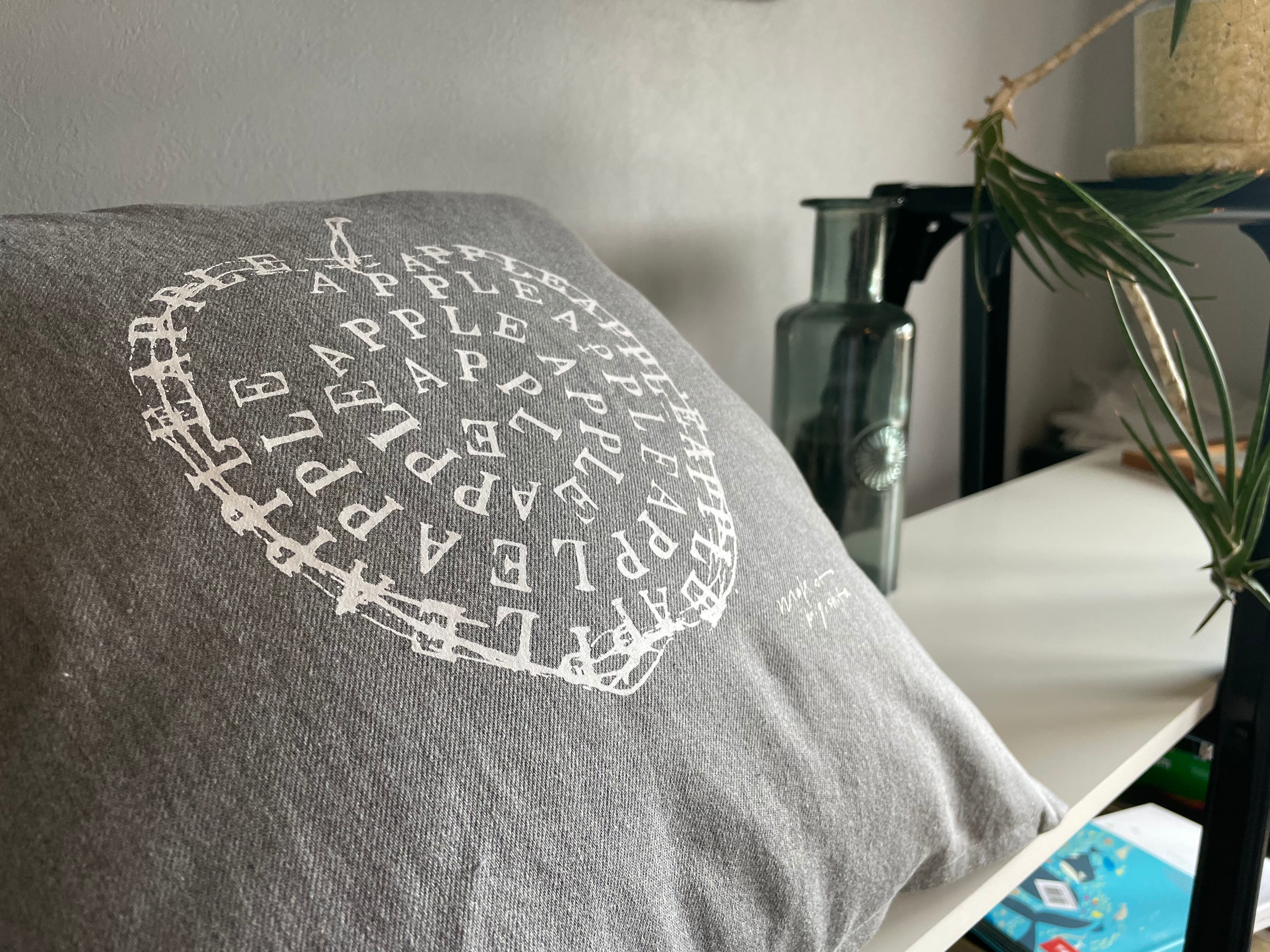 甘すぎないグレーカラーがさりげなくオシャレなmako Appleクッションカバーです。肌触りの良い高品質生地を使用しているため、手触りもしっとりとしていて抱き心地バツグン。